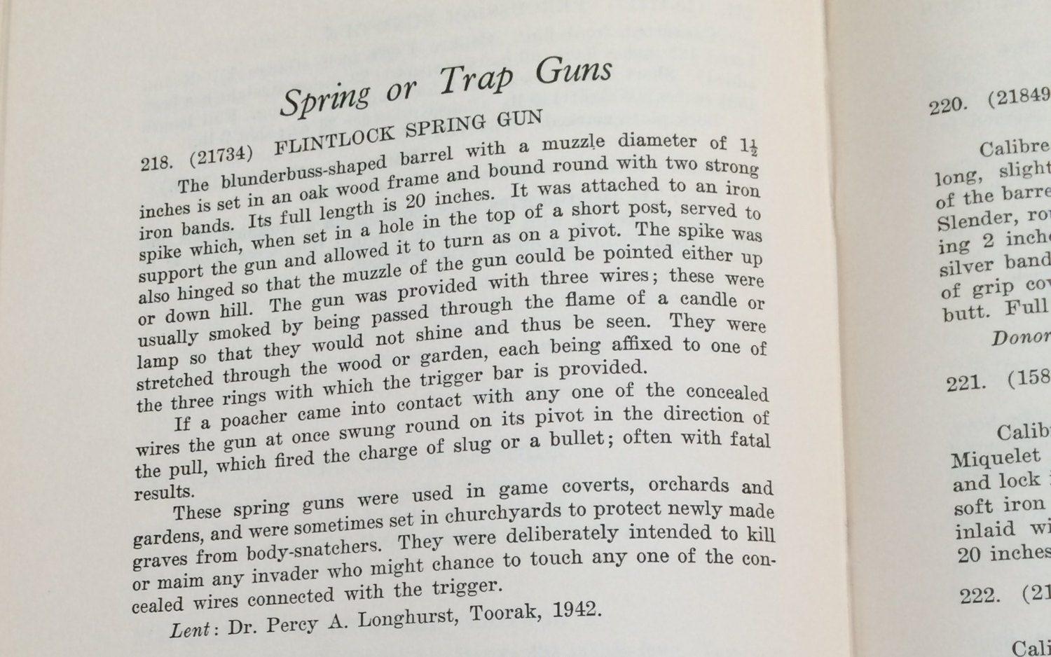 Museum catalogue cards were rarely made accessible to the public. Instead, they might refer to something like this descriptive catalogue by Roland Penrose from 1949,[5] which (again in keeping with the format) features a longer, more narrative entry for the same spring gun.