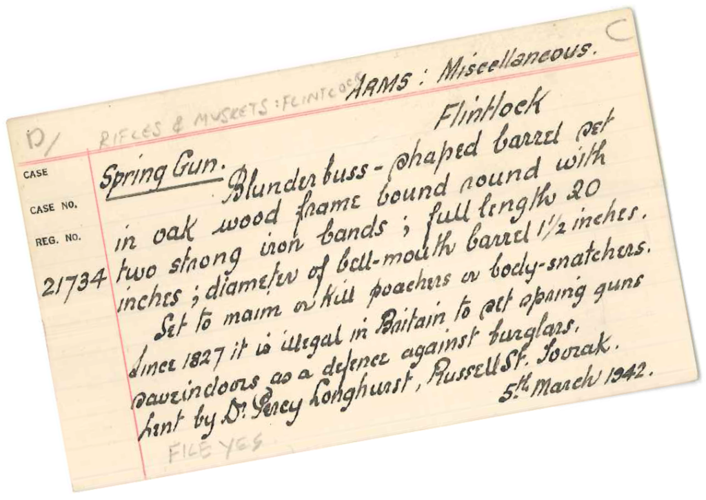 [6] Miller Christy, ‘Man-traps and Spring-Guns,’ The Windsor Magazine, Vol. 13, 1901, from Museum Victoria supplementary file 21734 – Arms – Spring Gun – Flintlock.