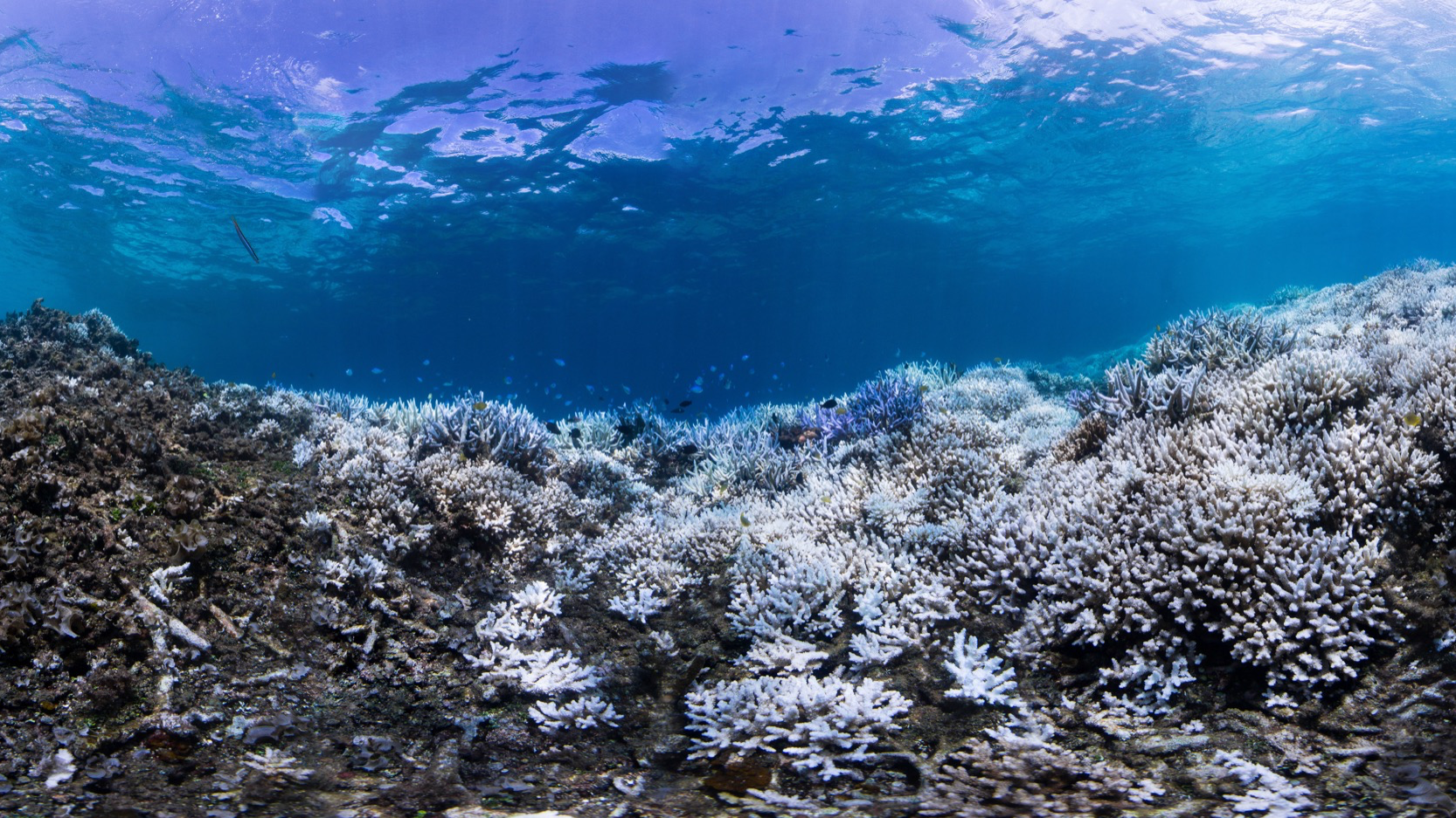 A mixture of bleached and dead corals around Okinawa, Japan, in September 2016.